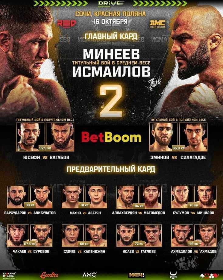 Где и как смотреть онлайн трансляцию AMC Fight Nights: Минеев - Исмаилов 2